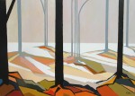 I had the wish to work on the same picture several times, playing with colours in order to create different atmospheres.All of the Trees series has been realised with the same three colours initially (plus black). The search for these colours rapidly became an extremely enjoyable exercise.