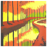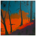 J’avais envie de travailler plusieurs fois la même image avec des ambiances colorées différentes. Toute la série Arbres a été réalisée avec les 3 mêmes couleurs de départ (plus le noir). Cette recherche des couleurs est vite devenue un exercice très plaisant.