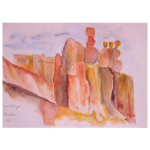 Impressions d’Amérique… Un carnet de voyage sans parole…juste quelques aquarelles pour imprimer sur le papier des instantanés de ce voyage d’un mois, rempli d’extrêmes… Une New York suffocante de chaleur et d’humidité, époustouflante de démesure et pourtant si humaine… Ensuite, 48 heures à Las Vegas, pendant lesquelles il faut oublier le SENS même des choses…Une ville au milieu du désert, des adultes qui jouent et des enfants qui n’en ont pas le droit, une chaleur qui nous retient à l’intérieur, on oublie que dehors il fait jour… C’est pour de vrai, c’est pour de faux, maman ? On ne sait plus. Puis, c’est l’échappée vers les Grands Parcs Nationaux : Magie du Grand Canyon …difficile pour les yeux de capter tant d’immensité, de nuances de couleurs changeant chaque minute. Majestueux Lake Powell et ses canyons engloutis, fragilité de Bryce Canyon, véritable dentelle de pierre, interminable barrière rocheuse de Capitol Reef, élégantes fenêtres de Arches… Enfin, dernière étape du voyage, une semaine à Glenwood Springs, Colorado. Ce Colorado que nous avons remonté sur plus de 2000 km, nous pouvons enfin nous y mouiller…Colorado parfois verdoyant aux paysages alpins, parfois ocre rouge aux paysages martiens… Bon voyage…