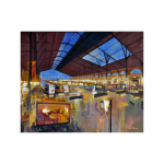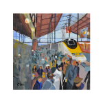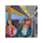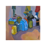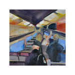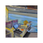 Chaque tableau, qu’il soit figuratif ou abstrait est déjà une invitation au voyage. Alors pour répondre au thème « Voyage », j’ai voulu revenir au sens premier du mot. Quel qu’il soit, un voyage n’est autre qu’un déplacement d’un point de départ vers une destination. D’affaires ou de vacances, il se prépare et s’effectue selon un rituel routinier : itinéraire, calendrier, valises puis attente, retard, étapes… Finalement, le voyage c’est une durée de temps à gérer, du temps que l’on passe à gagner du temps, en s’occupant, travaillant ou en dormant, en jouant, discutant, mangeant, rêvassant ou en s’évadant. Le voyage, même de toute petite distance, est bel et bien une coupure, un MOMENT. Avant, il regorge d’attentes, d’interrogations ou d’objectifs, après, il laisse un résultat, des souvenirs, des odeurs, des images, les sonorités d’un exotisme certain. Entre les deux, il est transition, adrénaline du départ, excitation du compte à rebours jusqu’à l’arrivée. Un moment que nous avons tous « déjà vécu ». Synesthésie du voyage.